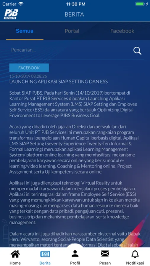 9. Menampilkan berita dari channel media sosial perusahaan dari akun Facebook resmi PT PJBS