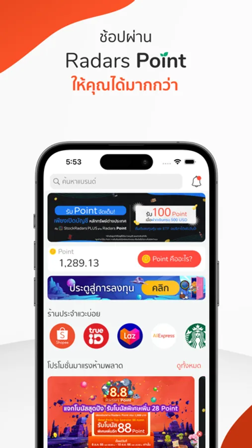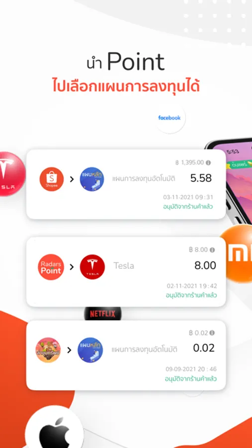 Only with one Point in Radars Point, you can own a fractional share in world-renowned businesses, both national and international including 7-11, AOT, Starbucks and Facebook.