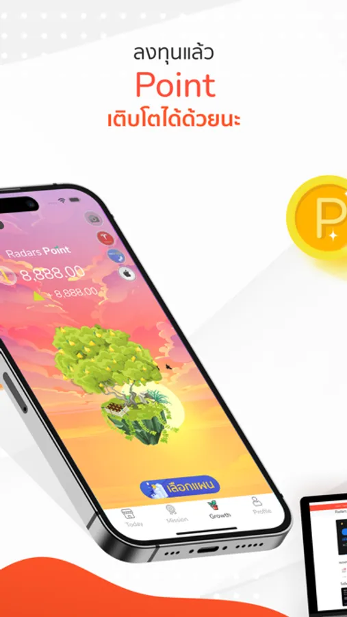 Keep on shopping to get more Point. Gradually collecting Point for investing is like growing your own tree. The more Point you earn, the more your tree in Radars Point becomes fruitful. Then you can reap a harvest of your grown tree.
