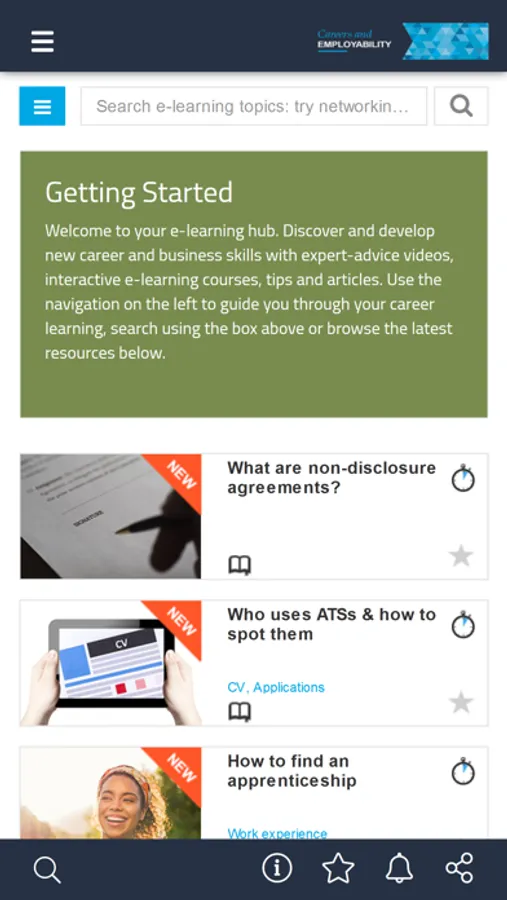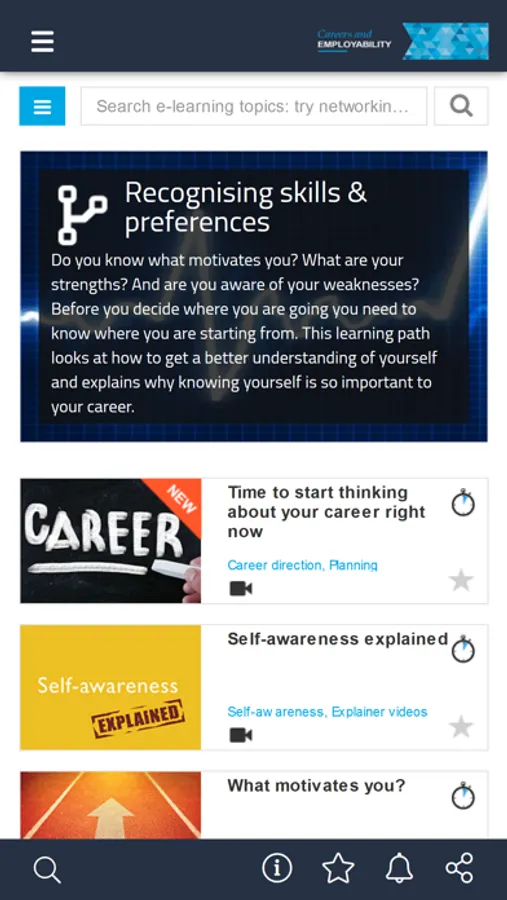 - CAREER E-LEARNING: Short courses tackling everything career-related from self-awareness to succeeding in the role