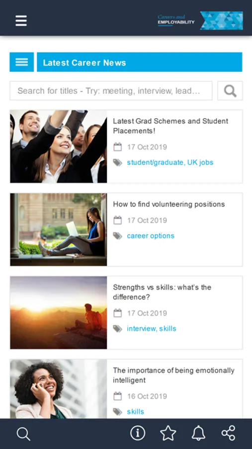 This app connects to your existing Career Centre account and allows you to improve your employability on the go. Everything you do in the app is in sync with your Career Centre account and you always have access to the latest career tools, news and resources.