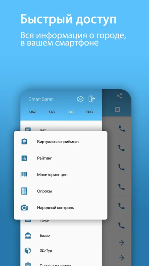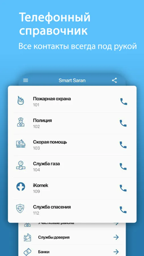 Мобильное приложение Smart Saran предоставляет возможность жителям города бесплатно пользоваться онлайн-сервисами и мгновенно получать самую актуальную и необходимую информацию не выходя из дома благодаря смартфону.