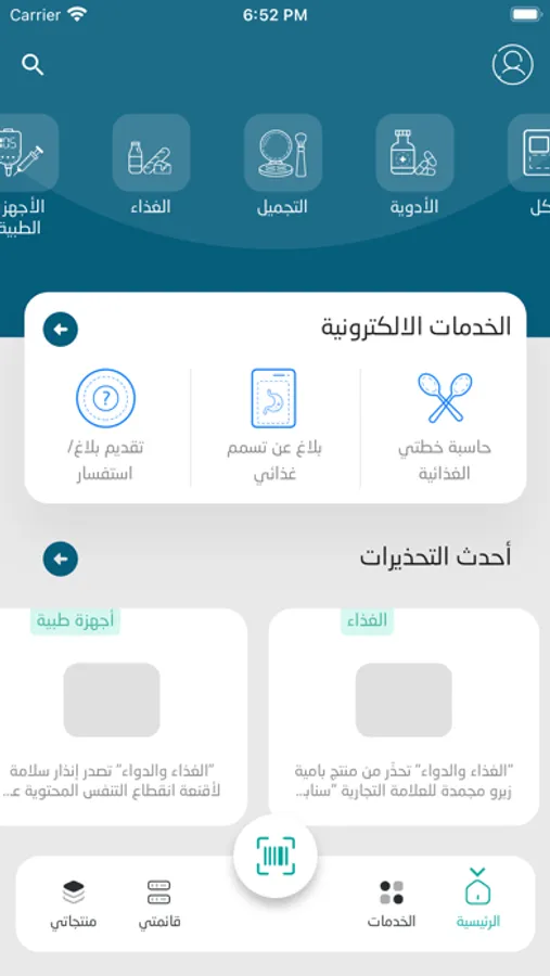 - البحث عن المنتجات الغذائية باستخدام الباركود الخاص بالمنتج ومعرفة مسببات الحساسية للمنتج