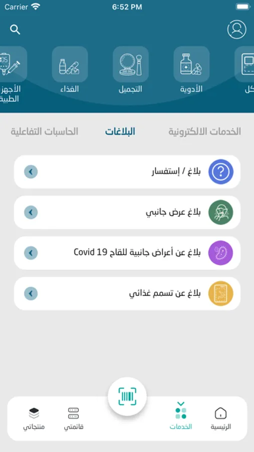 - تقديم البلاغات والاستفسارات حول المنتجات