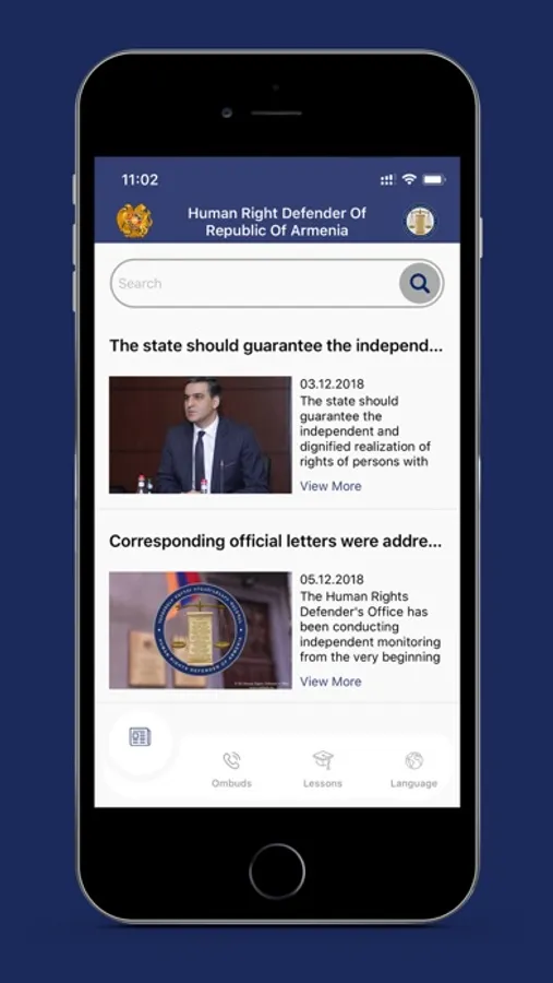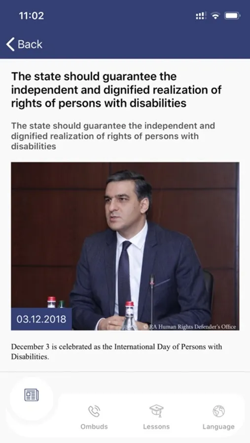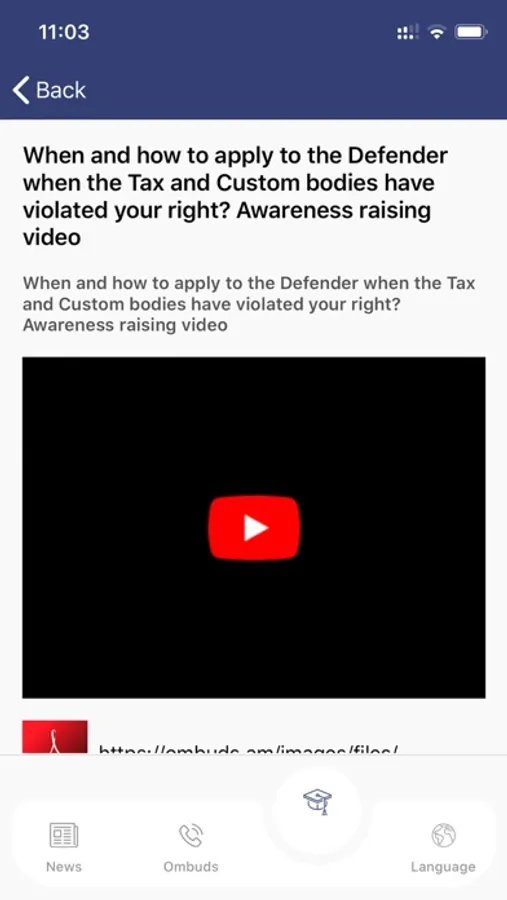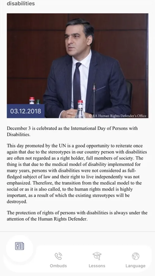 In addition to the Ombudsman's website, you can also use this app. It keeps you up to date with all news and training available on the website easily and quickly. With the app you can immediately contact the Human Rights Defender's Office by calling or sending a message.