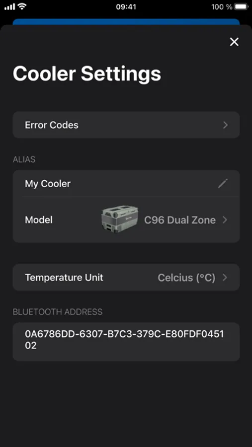 In this version of the app, all error codes are available offline. If there’s an issue with your Truma Cooler, you’ll see a pop-up in the app with the error code and steps to help you solve the problem.