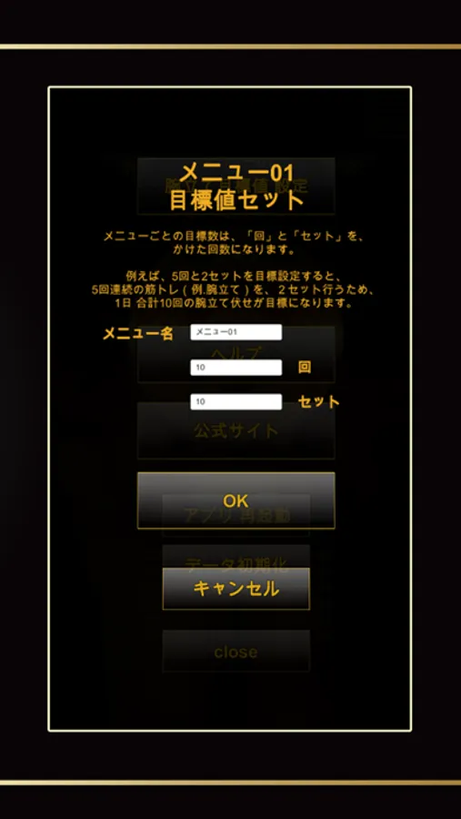 トレニングメニューを合計5パターン(メニュー)設定!!