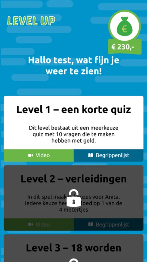 Je neemt een kijkje in het leven van Kevin en Anita, samen met hun leer jij doormiddel van 7 minigames om met verantwoordelijk geld om te gaan!