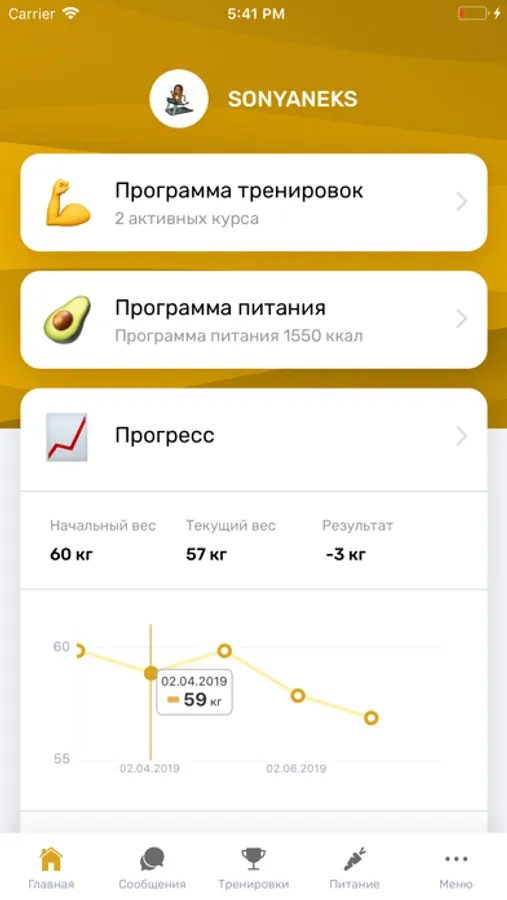 Тренируйся, общайся, делись впечатлениями и получай советы от Сони. В личном кабинете твой куратор и диетолог будут всегда на связи и ответят на любые вопросы.