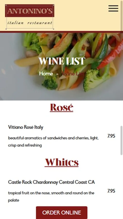 The creation of Antoninos has truly been a labor of love. We are a friendly, cozy, family-style restaurant that has old-fashioned roots. Inspired by Italy's romantic nature and tradition, we sought out the elements essential to the creation of a restaurant dedicated to the authentic spirit of Italy. Our insistence on perfection is a primary factor influencing the selection of everything. It's the perfect place to go for the perfect lunch or dinner.