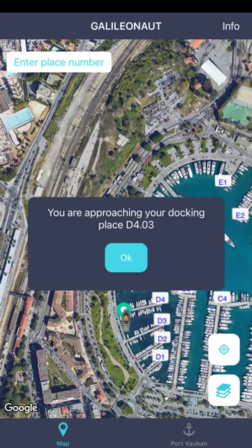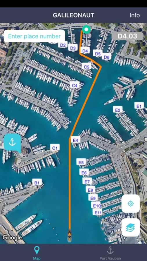 GALILEONAUT considers the location given by the smartphone and use a surface algorithm to compute the trajectory to the berth.
