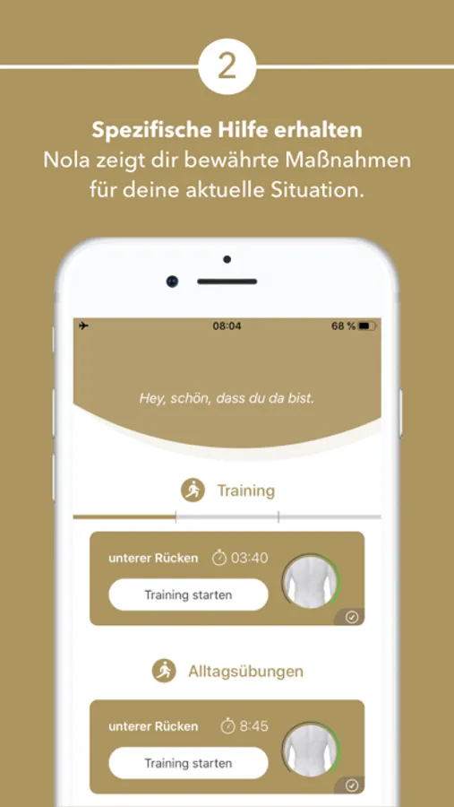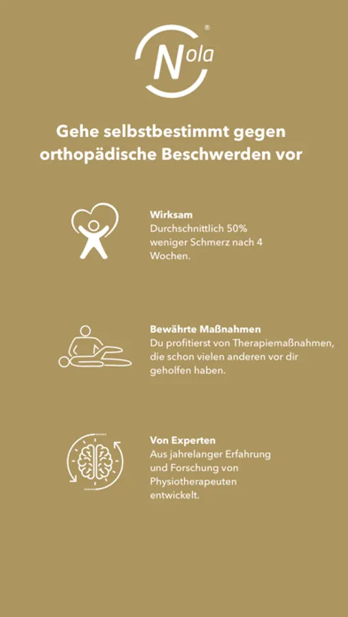 Nola ist keine reine Trainings-App. Begleitende Erklärungen vermitteln dir, wie dein Schmerz entsteht und was dagegen hilft. Das eröffnet neue Chancen für eine erfolgreiche Therapie.