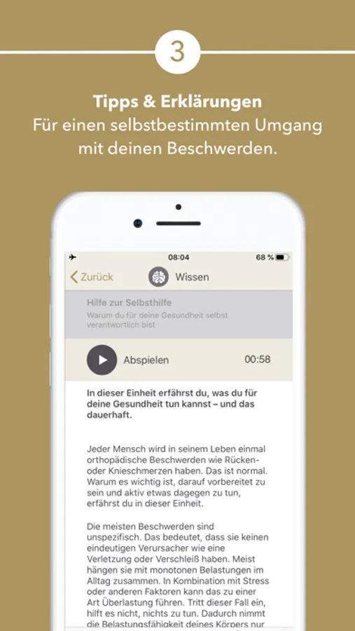 Woher kommt dein Schmerz? Welche Faktoren beeinflussen ihn? Verständliche Erklärungen ergänzen die Übungen und runden deinen Therapieplan ab.
