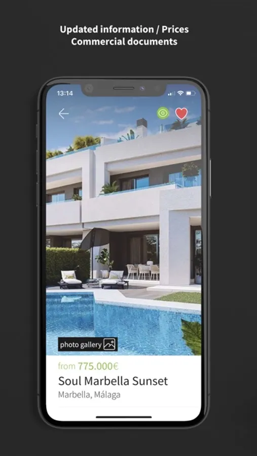 Take the control of the app and add your favourites, check out the image gallery or have a conversation with any new development at any time.