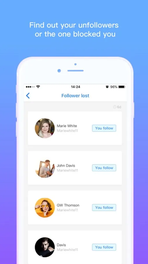 - Get informed of follower gain and lost