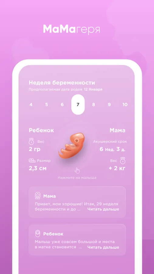 Помимо видео-уроков йоги, Вы можете наблюдать, как растет, развивается и меняется Ваш малыш в его 3D-визуализации, а Push-уведомления напомнят о приеме лекарств и витаминов в нужное время.