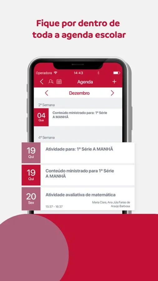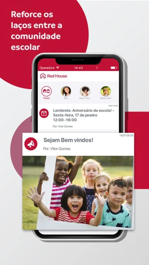 Com este aplicativo, os pais, responsáveis e professores poderão receber as últimas informações da escola, as notícias do dia a dia dos seus filhos e o calendário de atividades escolares.