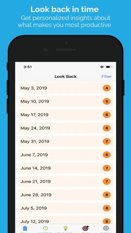 Your Productivity Index (PI) acts as a personalized self-reflection scale to encourage you to celebrate your wins and learn from your mistakes while constantly motivating you to push limits.
