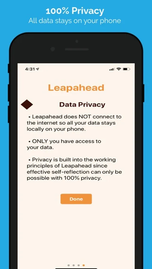 Leapahead does NOT connect to the internet so all your data stays locally on your phone.
