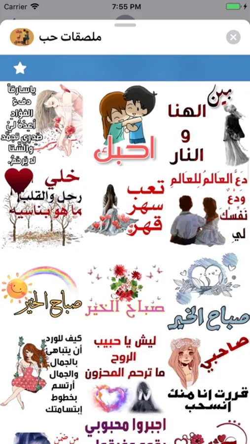تطبيق "ملصقات حب" يقدم لك المئات من رسائل الحب والعبارات الجميلة الرومانسية التي هي المفتاح لقلب الحبيب.