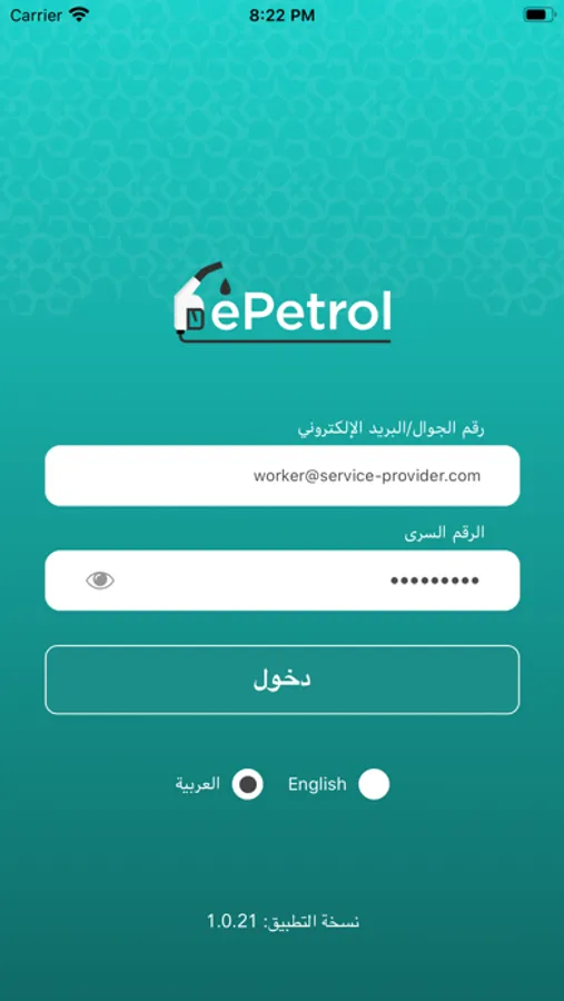 يقوم هذا التطبيق بمعاونة عامل المحطة في مسح كود التموين للسائق للتوثيق ولتنفيذ عملية التموين بالوقود.