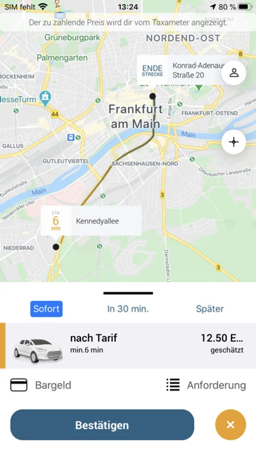 Bestellen Sie Ihr Taxi in Frankfurt und Umgebung mit zwei Klicks zu Ihrem Standort!