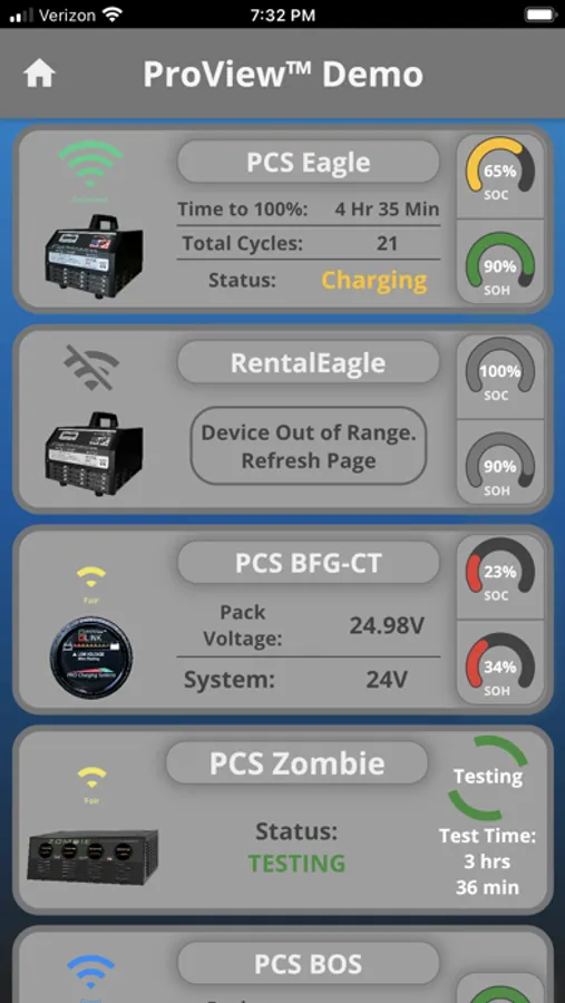 Pro Charging Systems, LLC (PCS) new revolutionary PROView Link® (PVL) allows you to monitor your PCS wireless enabled device(s) from your mobile device(s). Wireless connectivity provides a convenient and functional way to access pertinent information directly to your smart phone or tablet such as current state of charge.