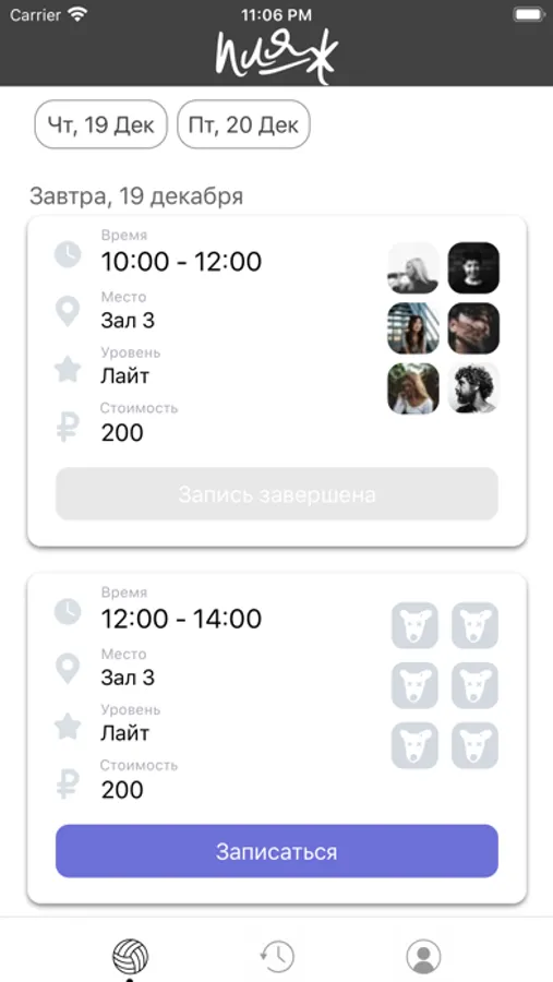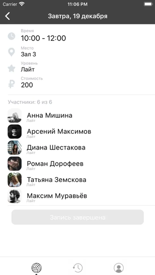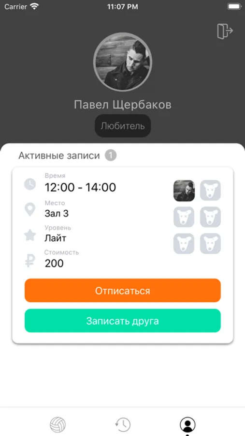 Так же через приложение можно посмотреть личную историю уже сыгранных игр, а активные записи на игры всегда на виду в профиле!