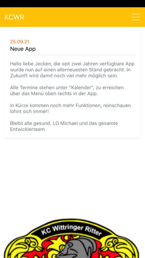 KC Wittringer Ritter ist die App für die aktuelle Session um auf dem Laufenden zu bleiben. Über die App können die Termine des Prinzenpaares eingesehen sowie Fotos von Veranstaltungen angeschaut, als auch Bilder hochgeladen werden.