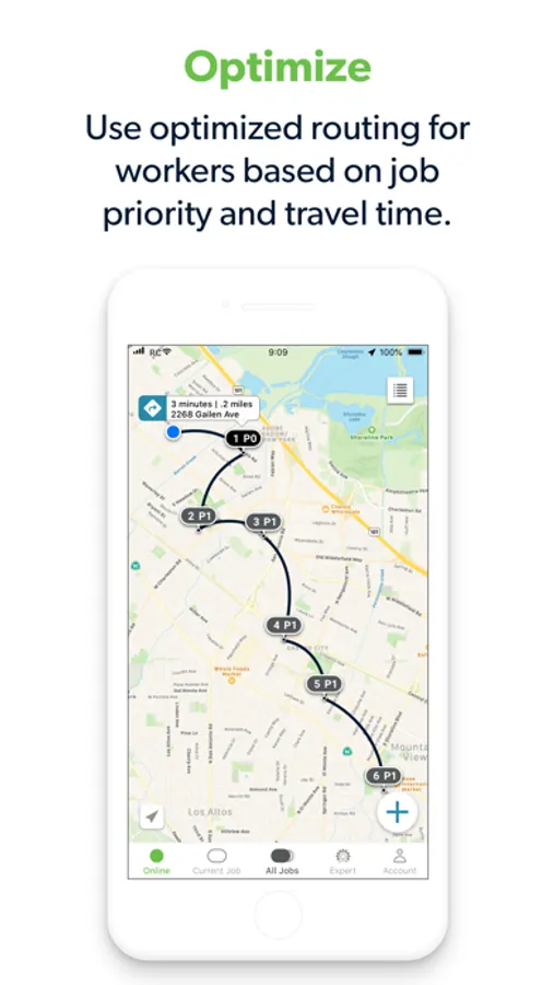 • Auto-assign dispatches jobs to the workers based on job priority, the worker’s location and the worker’s skills. This reduces the worker’s transit time dramatically.