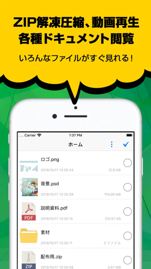 ダウンロードしたファイルの閲覧や管理が可能です。
