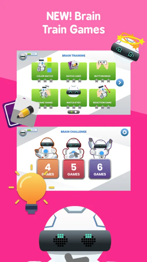 • Color Match: Match colors in the app to MiP™ Arcade's chest light. How many colors can you match before time runs out?