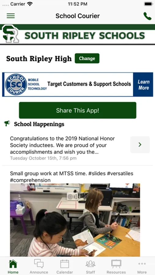 The South Ripley Community School Corporation (Indiana) app for iPhone, iPod, and iPad allows student, faculty and parents to keep up to date with school communication. Schools included in the app: South Ripley High School, South Ripley Junior High School, and South Ripley Elementary School. We are a high achieving, student-centered school district and proud of the success of our students in both academics and extracurricular activities. The app’s intuitive navigation provides quick access to the following: