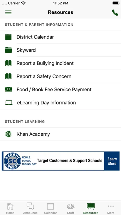 - Easy access to school tools