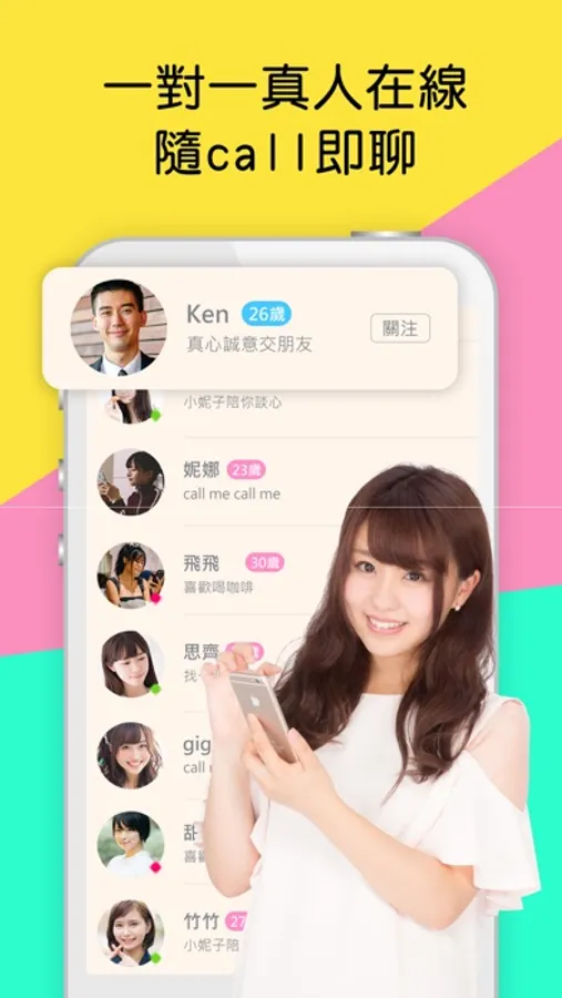 ◎ 聊天互動:與喜歡的對象一對一聊天,隨call隨聊