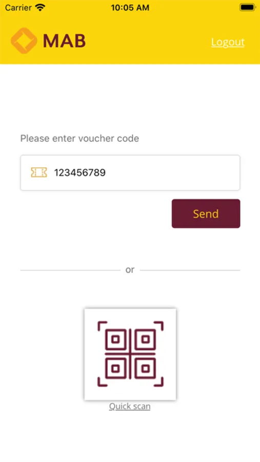 MAB Rewards Merchant App is a multi-function tool developed specifically for Myanmar Apex Bank direct merchants voucher code fulfillment. After logging in successfully, Merchants will use the merchant app to enter a voucher number and tap verify or using QR code scanning function instead.