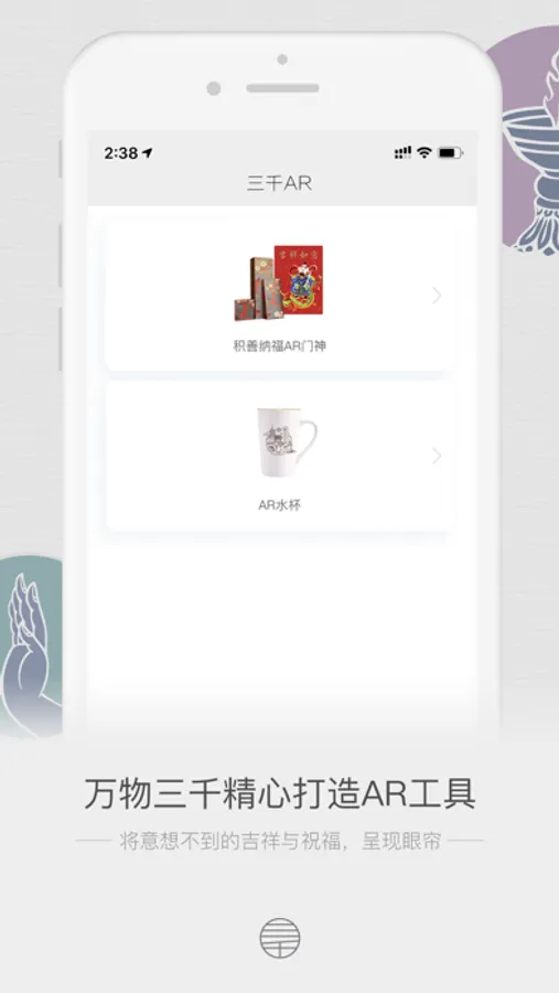 叁仟AR App 由万物三千团队专业打造,通过AR技术为用户实现日常观修、娱乐互动的工具。具备强大的AR识别功能,配合相关实体产品可实现多媒体交互效果。叁仟AR App将意想不到的吉祥与祝福,呈现眼帘。