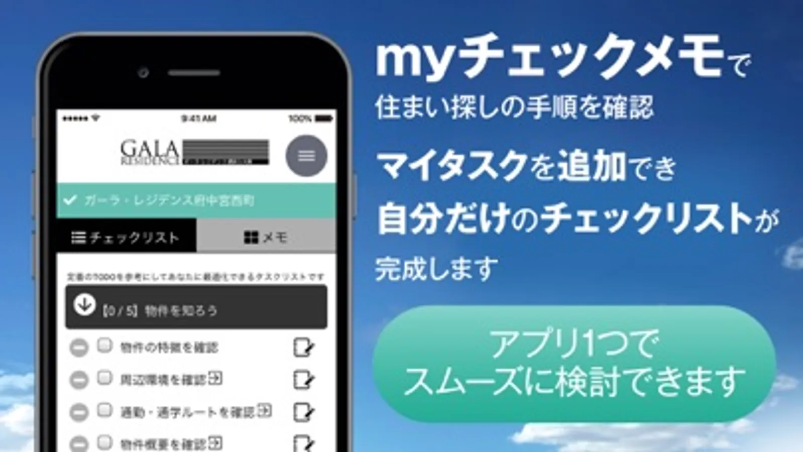 1つのアプリ内で複数の興味ある物件をフォローし、フォローした物件別に、検討に必要な情報を記録(見学メモ)や確認した情報を記録(匿名できいてみる)しておくことができます。