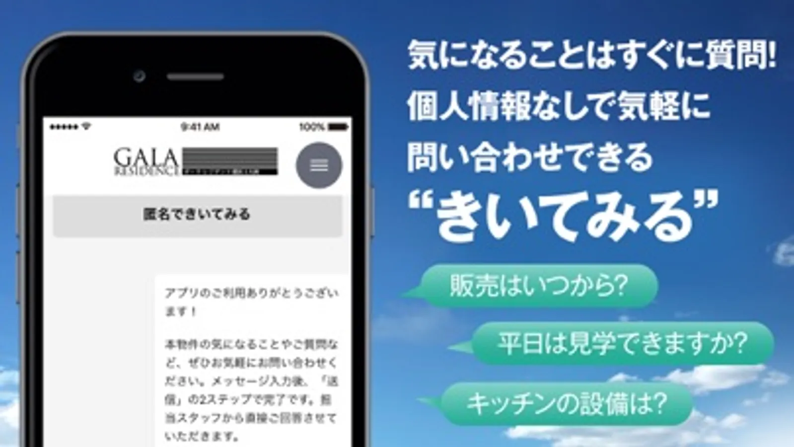 気になること・不安なこと・もう少し詳細を聞いてみたいこと、わざわざ電話することなくアプリだけでメッセージを送って物件の担当者に質問ができます。