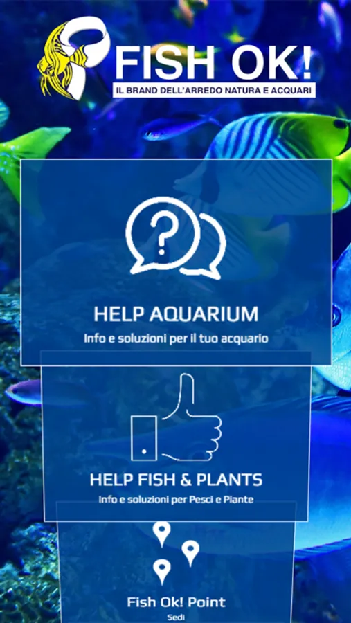 Troverai tante sezioni utili come: - HELP AQUARIUM, dove avrai informazioni di base ed anche più professionali per gestire il tuo acquario ed info e soluzioni, dove sarai aiutato a riolvere problemi, che di volta dovessero presentarsi; - HELP FISH & PLANTS, dove ci sono tante info utili, su come gestire i pesci tropicali e le piante, come si scelgono, come si allevano, fino a come risolvere problemi e curare eventuali malattie; - SCHEDE PESCI E PIANTE, per vedere e volendo anche acquistare, tantissime varietà di pesci e piante per il tuo acquario; - BIOTOPI ACQUARI, ossia una sezione dedicata alla realizzazione di veri e propri angoli di natura, che rappresentano fedelmente zone gegrafiche acquatiche del mondo; - UTILITY, è la sezione dove troverete formule e schede utily per la Co2, per FMC, Poster, Gadget e tante altre applicazioni sempre in aggiornamento; -SCRIVICI, è il servizio e community, che mettiamo a disposizione per aiutarvi nella gestione del vostro angolo di natura ed acquario. - FISH OK POINT; è la sezione dove potrete trovare i negozi e professionisti del settore a voi piu vicini, che sono affiliati al nostro brand; - ACQUISTA ONLINE, è la sezione che vi porterà sul portale ufficiale FISH OK!, dove poter acquistare direttamente e comodamente da casa vostra, laddove non abbiate un rivenditore ufficiale o affiliato Fish Ok!, nella vostra zona. Un'App da CONSERVARE, per i nostri segreti del mestiere e CONDIVIDERE con amici che hanno la vostra stessa passione.