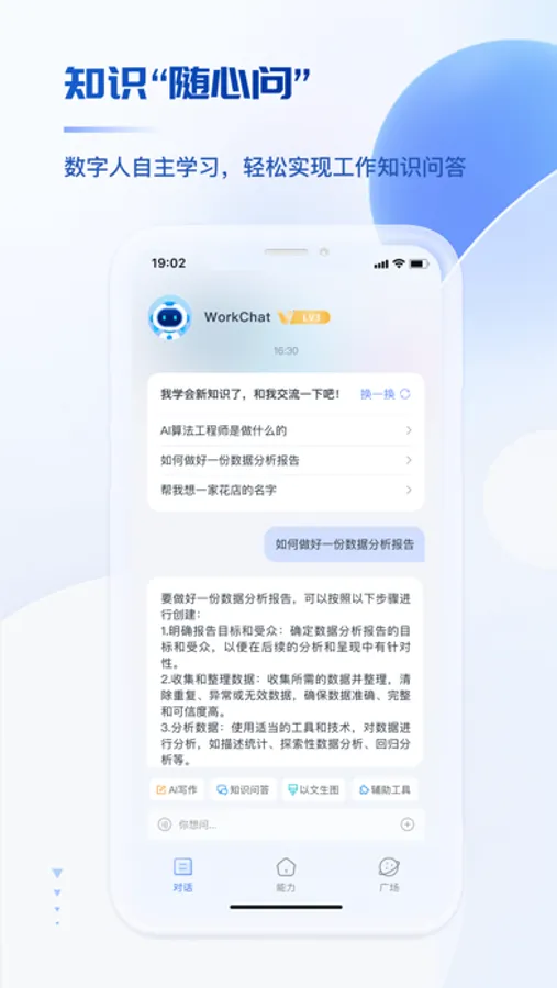基于明途目标大数据所训练的工作数字大脑【WorkBrain】模型、结合数字孪生技术、为您量身打造工作数字人【WorkChat】,陪伴您学习成长、辅助您写作工作文档、帮您自动执行任务、带领您进入工作元宇宙!