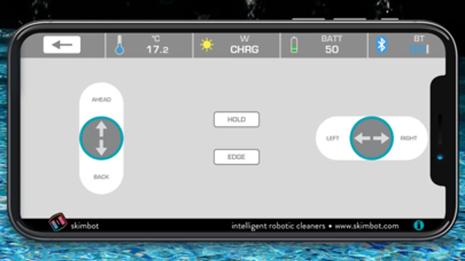 Customizable settings, manual remote control as well as pool temperature, battery level and charging status readouts.