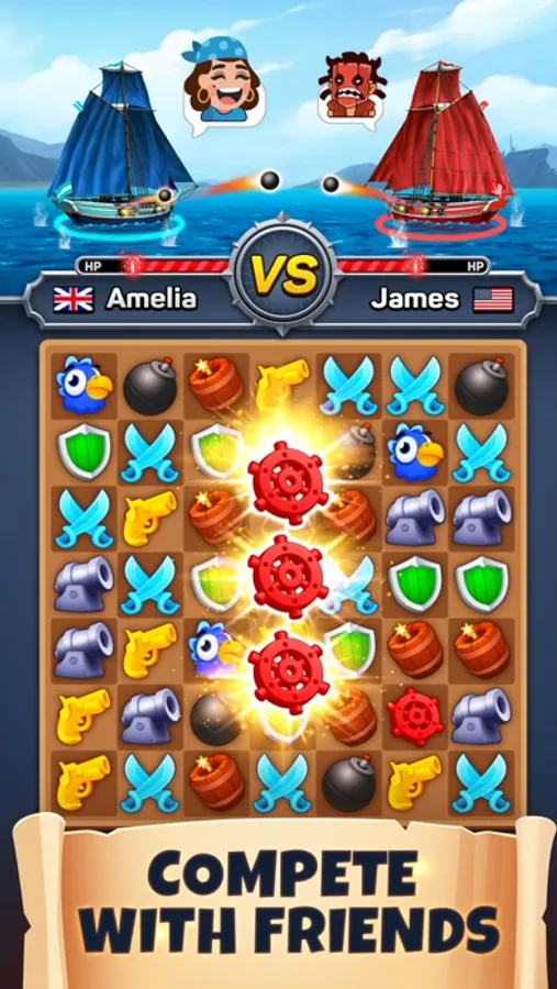 Pirates and Puzzles is a new Match-3 game with an amazing pirate setting and dynamic PvP battles. Anchors aweigh!