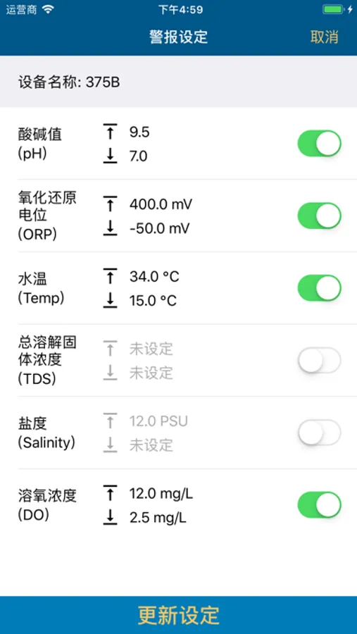 -Built-in temperature, pH, TDS/conductivity, ORP, salinity, DO, Four sets of 10A relay contacts and support 4-20mA、 RS485 Port for external device(by customer design order, e.g. Optical DO,Water meter)
