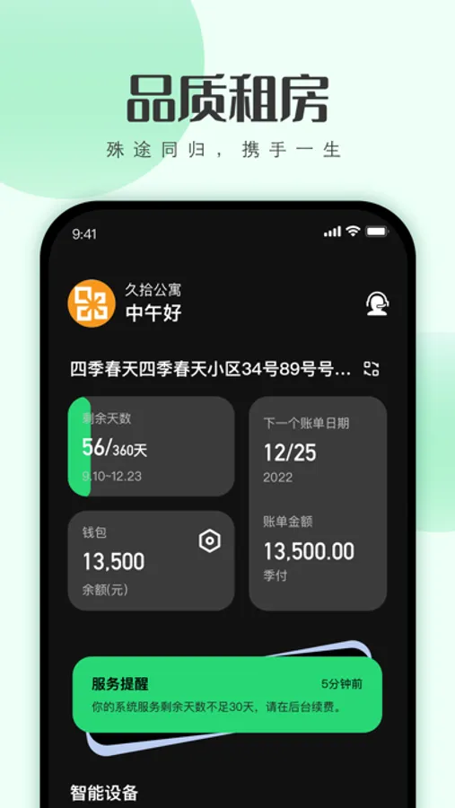 寓小二APP以“清爽的界面风格,高效的设计理念”,为租客提供在线签约、线上支付、查看租约,智能设备快捷操作、充值缴费等功能。