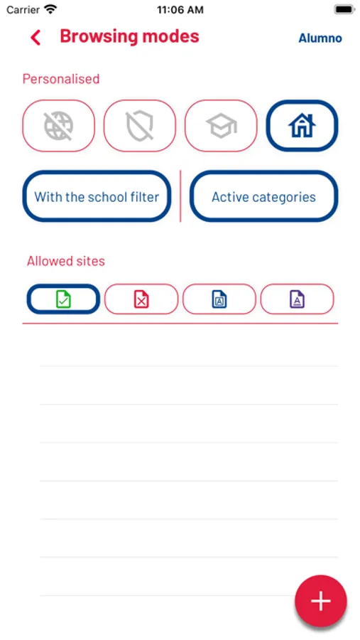 Thanks to the Internet Filter's “Easy-Override” technology, you can switch between three or four different browsing modes, depending on the configuration set by your school's ICT Administrator.
