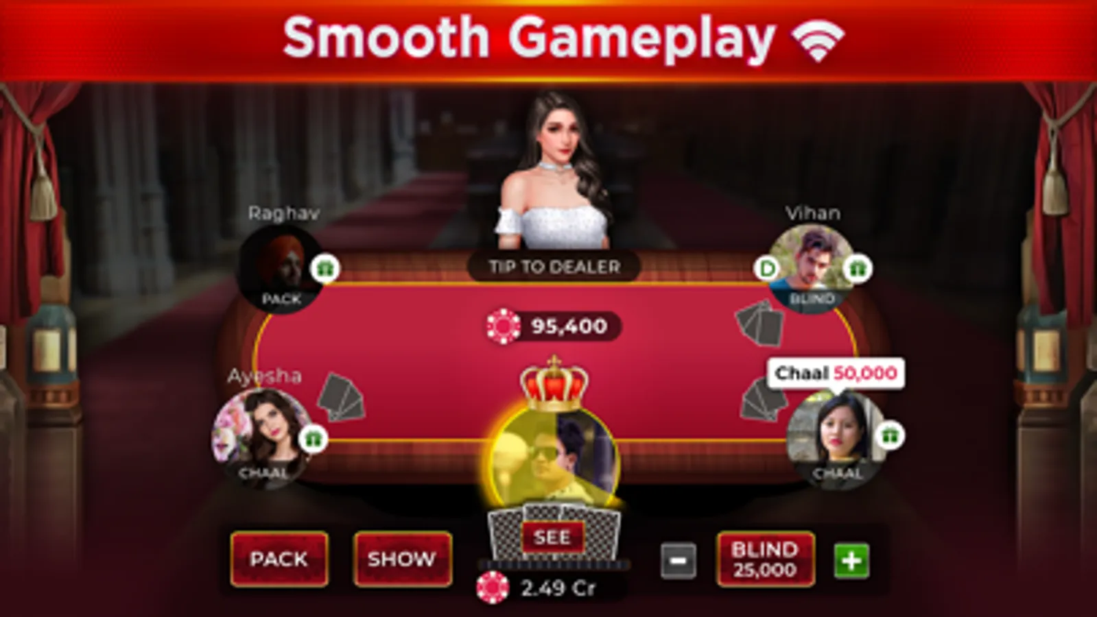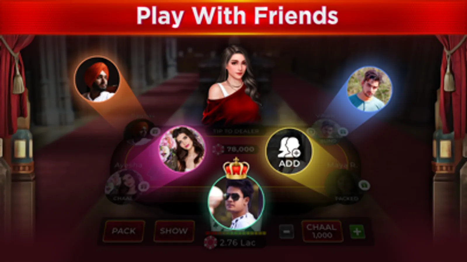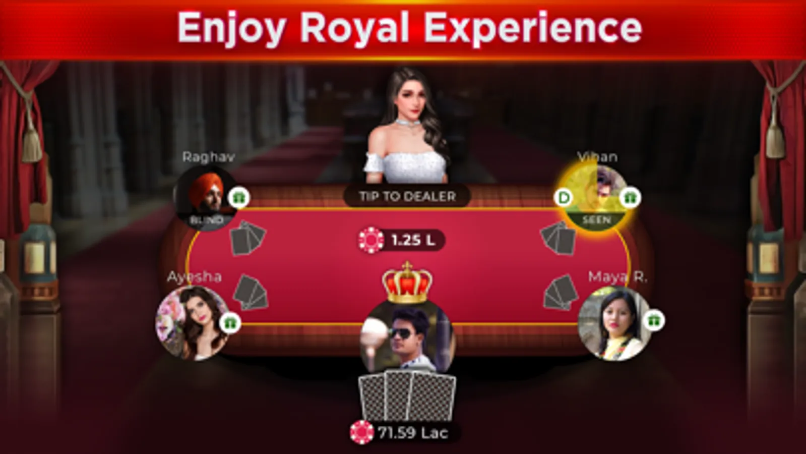 • It's Free: Royal Casino Teen Patti is completely free to play with extra in-app purchases.