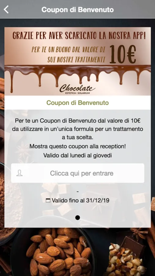 La clientela del Chocolate è accolta da uno staff professionale e cortese in uno spazio lussuoso ed elegante, dotato di due cabine solarium e quattro cabine per i trattamenti estetici, studiato per coccolare e viziare i propri clienti in un’atmosfera suggestiva all’insegna dello star bene.