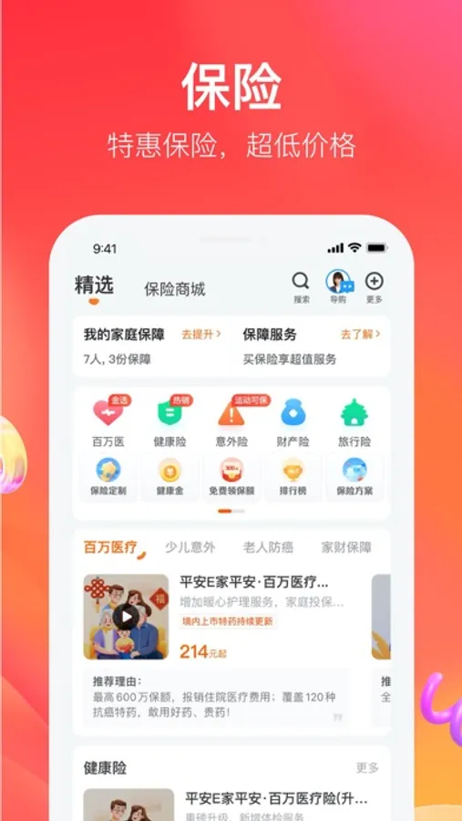 【保险购买】可以在首页、产品菜单栏中选购精选保险,并且在注册时可获赠保险折扣券。