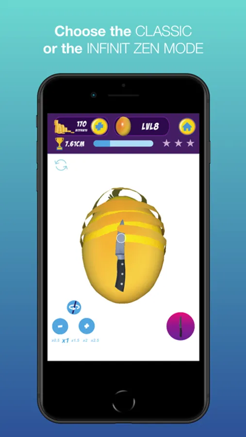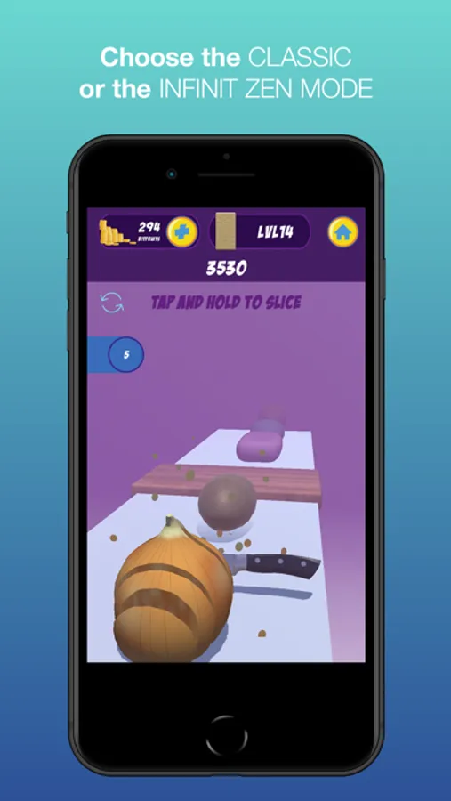 - Zen mode unlimited slicing: A very relaxing and satisfying mode while you can enjoy an infinite number to items for you to slice while you can earn coins and you them later to spin the fruits jackpot.